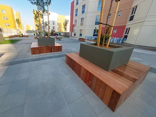 For the Emirates Humanitarian City project, we completed the supply and installation of durable benches, designed to provide comfort, functionality, and long-lasting performance in public seating areas. The benches were crafted to blend seamlessly with the surroundings while offering practicality for daily use.