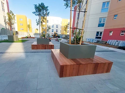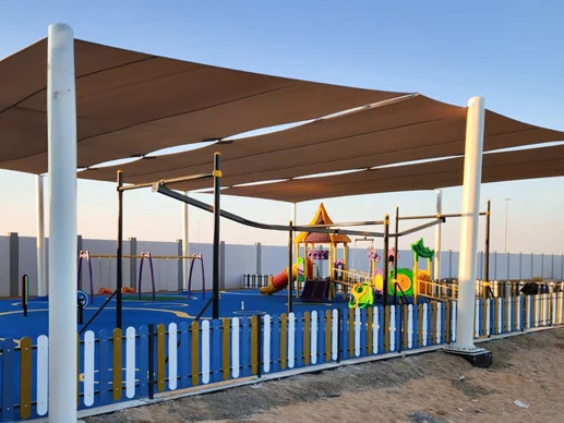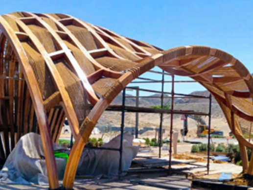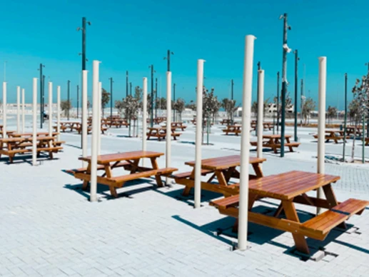 We successfully executed the design, supply, and installation of a custom wooden curved pergola with fabric covering, delivered for Emirates Link Nitco.