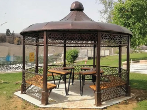 At Wadi Al Helo in Kalba, Sharjah, we carried out the supply and installation of a gazebo and seating area for the community. The structure was designed to provide shade, comfort, and a welcoming space for relaxation, blending seamlessly with the natural surroundings and enhancing the public environment.